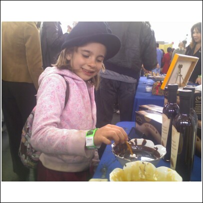 Fort Mason was absolutely packed. Maybe a little too packed. I bought my ticket early so it was $20 instead of the $25 charged at the door, but I’d gladly pay double if it would cut down on the masses. The chocolatiers would cut up a truffle, say, into minuscule tidbits and everyone would crowd madly around to get a sliver. It made me think of pigeons jostling each other for breadcrumbs. Small Fry and I certainly had our share — amazing how fast one feels stuffed while partaking in teeny tiny bites.