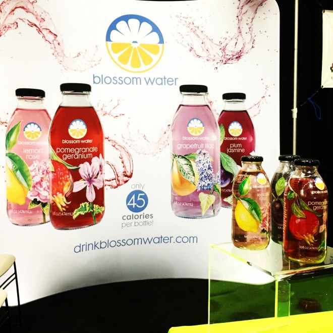Summer in a bottle. That was my first impression upon sipping the tasty “Blossom Water” at the Fancy Food Show. Blossom Water is pure water infused with fruit and flower essences, lightly sweetened with agave and all natural.